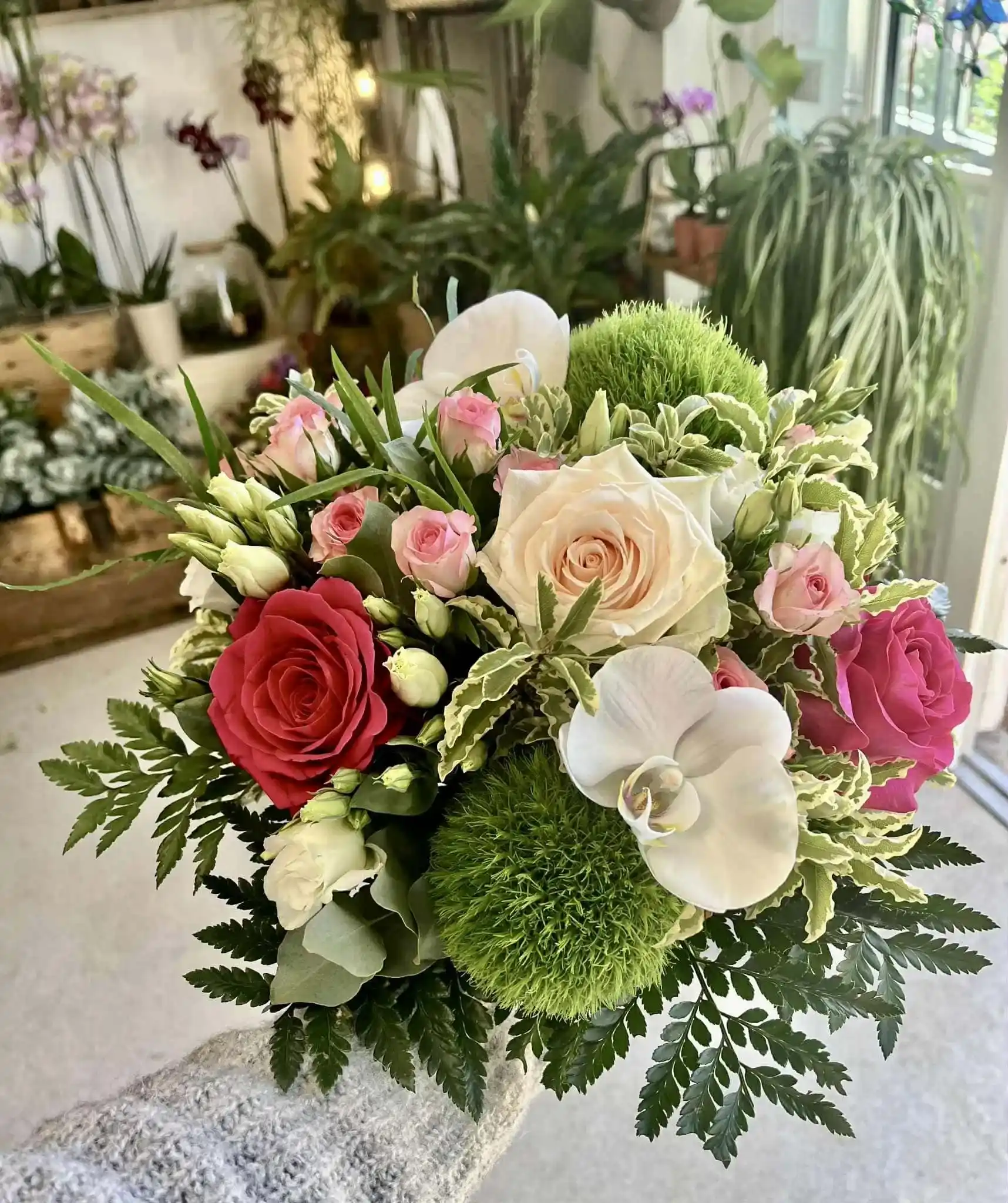Donnez moi une couleur + une occasion + un feeling + votre budget → je compose devant vous un bouquet unique avec les fleurs fraîches de la semaine.