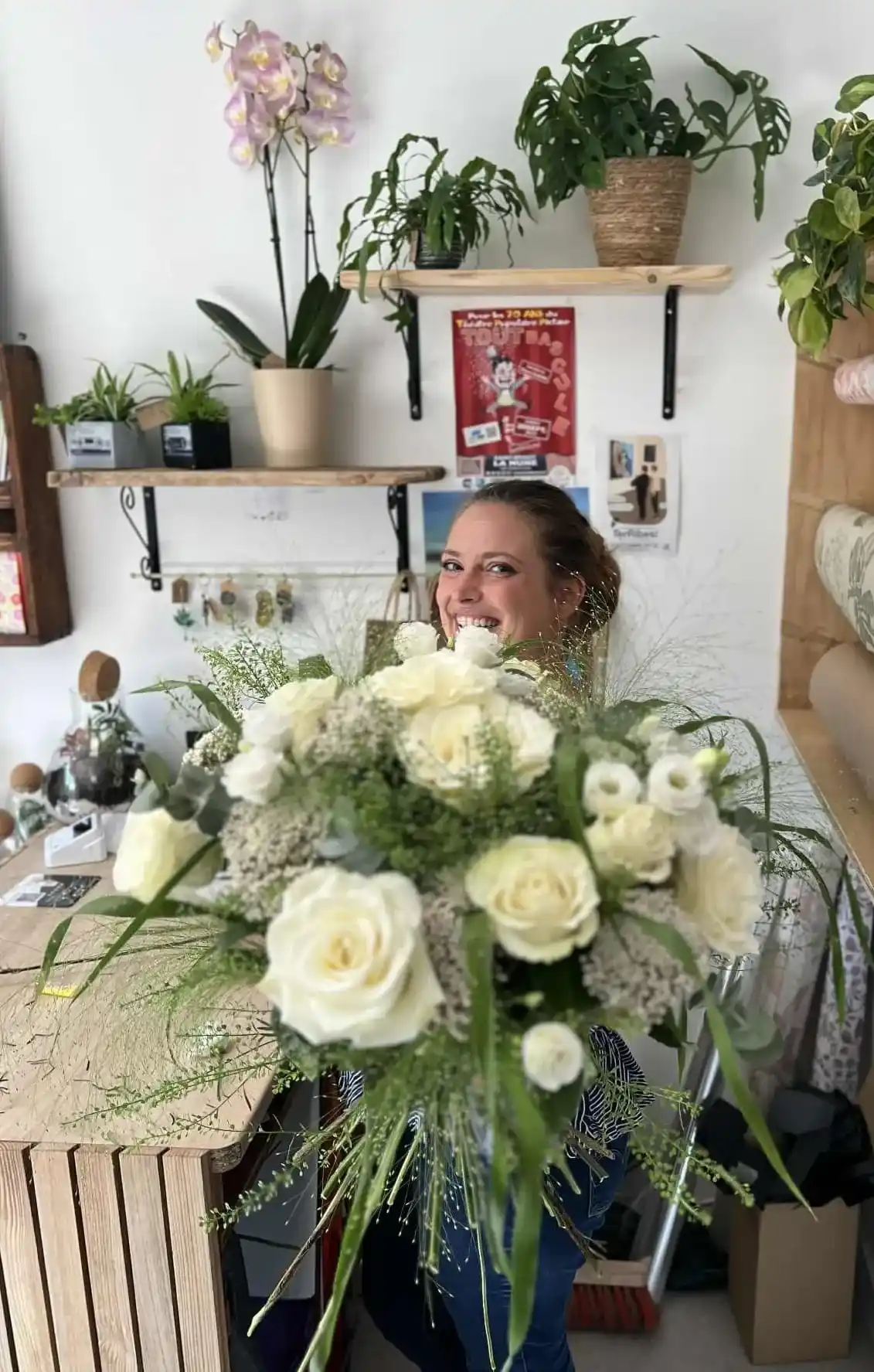 Ici, pas de catalogue figé. Juste des fleurs qui changent chaque semaine, des bouquets composés à la main, et des plantes vraiment adaptées à votre espace.