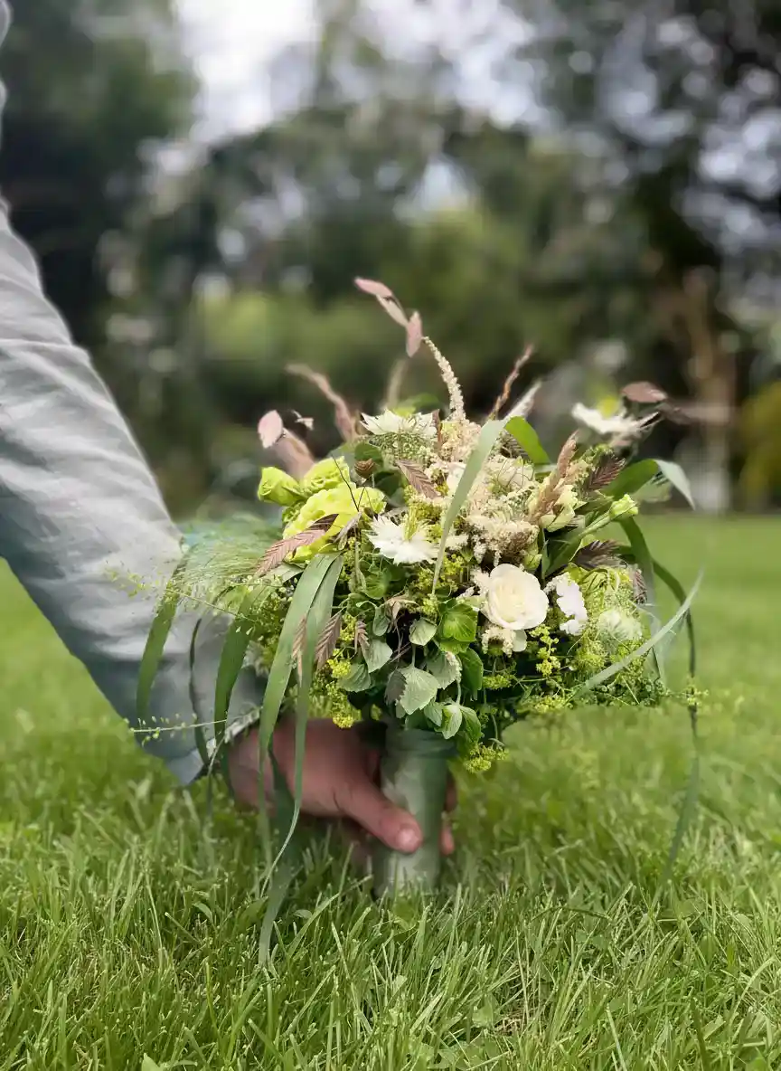 Je fais partie de ces fleuristes passionnés qui ne se contentent pas de livrer vos bouquets — je réfléchis avec vous à la cohérence du décor, aux contraintes du lieu (lumière, trafic, entretien), et à la durabilité de l'installation. Pour les grands projets de végétalisation, je choisis mes plantes par synusies (associations naturelles qui cohabitent bien), et j'intègre irrigation et éclairage si besoin.