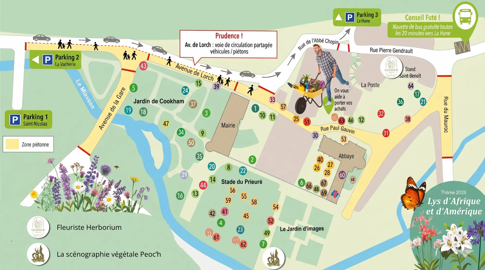 Le conseil : privilégiez La Hune (P3). Les navettes vous déposent directement sur le marché, évitez de chercher à vous garer en centre-bourg le temps de l'événement.