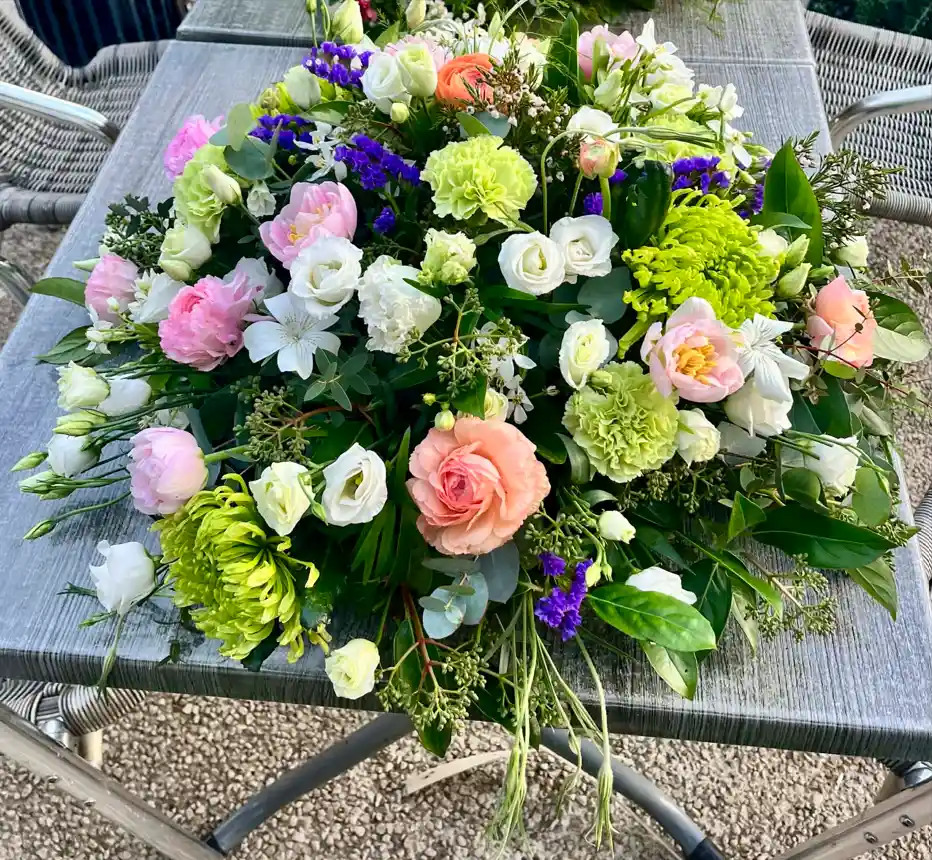 Style jardin, fleurs spécifiques, couleurs particulières, composition originale. Tout est possible. Je m'adapte aux goûts du défunt, aux souhaits de la famille, aux contraintes du lieu.